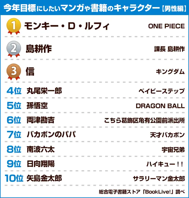 BookLive! 2017年目標にしたいマンガ・書籍のキャラクターアンケート結果を発表