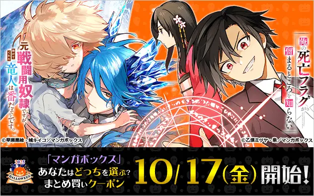 期間中は、TOブックスやマンガボックスのほぼ全作品を対象に最大40%OFFクーポンを配布。さらに、魔女やヴァンパイア、死神などハロウィン定番のキャラクターが登場する作品を、無料または最大50%OFFでご購入いただけます。